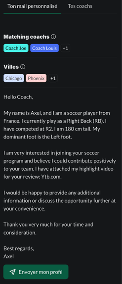 Fais matcher ton profil avec les demandes des coachs, contacte les recruteurs, joue aux USA.