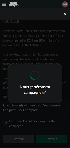 "J'ai créé Next Player pour donner une chance aux joueurs/joueuses de réaliser ce rêve grâce à une application qui simplifie toutes les étapes du recrutement universitaire."